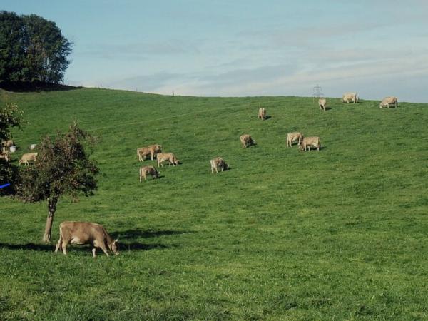 Eine standortgerechte Milchproduktion mit viel Weidegang liegt uns am Herzen. Schatten finden sie dabei unter unseren 190 Hochstammbäumen. Unsere 30ha werden ausschließlich als Naturwiesen genutzt.